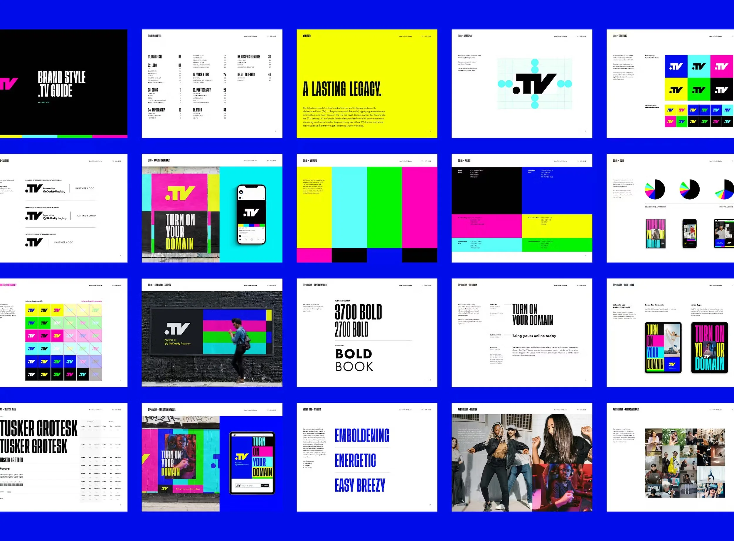 SMPTE color bars were are inspo for all. This reference to tv nostalgia but with a modern, clean update creates a fun, energetic, bold, stand-out brand.