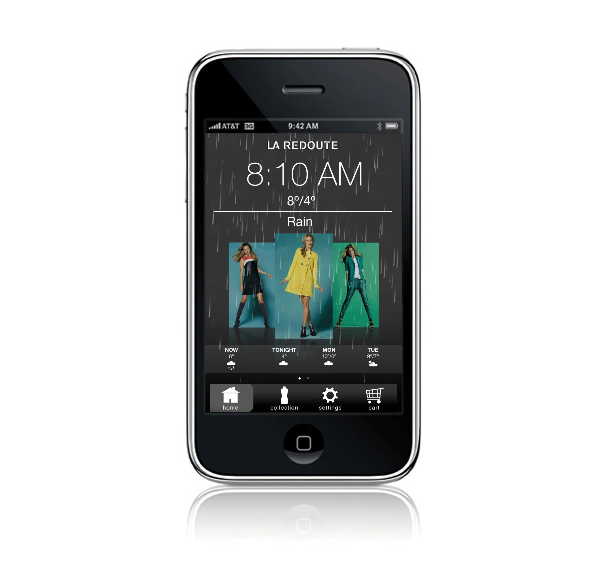 We concepted an app for La Redoute that makes the fashion decision part of your morning routine. Designed to be your first point of contact each day, the app combines weather data, mood prompts, and style inspiration to deliver a tailored outfit suggestion in seconds.