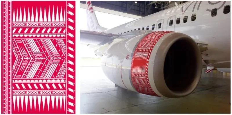 The tatau design has been fully incorporated into the Virgin Samoa brand and is featured on the plane, uniforms and in airport lounges.